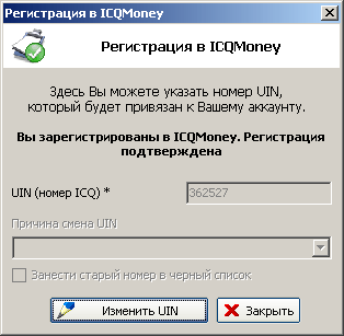 Для смены UIN нажмите кнопку "Изменить UIN", и станут доступны элементы ввода, где вы сможете указать новый UIN, причину смены, а также указать на необходимость занесения старого номера в черный список. После смены UIN новый UIN также нужно подтвердить в стандартном порядке. |