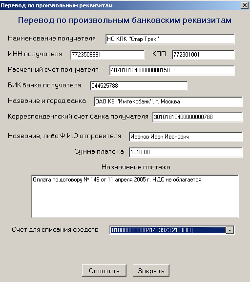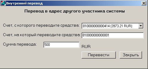 Для внутренних переводов (внутри платежной системы) используется пункт меню "Внутренние переводы", а для платежа по банковским реквизитам - "Внешние переводы".